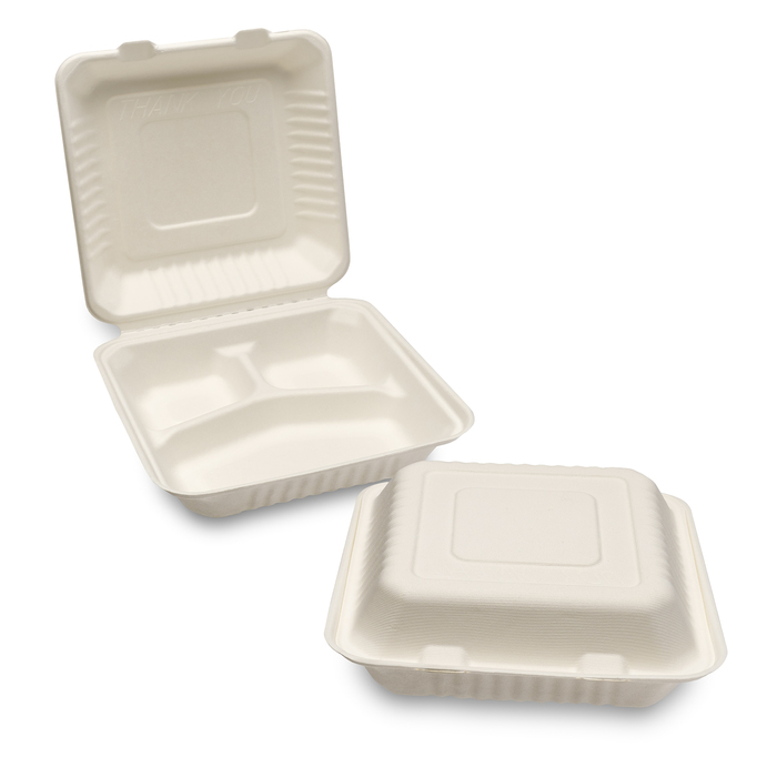 BG3 Bagasse Meal Box 3-Compartment White