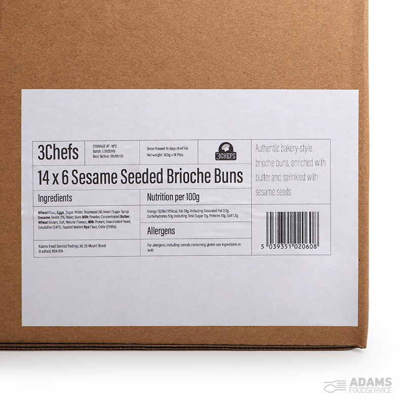 WHEAT flour, EGGS, Water, Sugar, Invert sugar syrup, Rapeseed oil, SESAME SEEDS 2%, Yest, WHEAT GLUTEN, Concentrated butter, Skim MILK powder, Salt, Natural flavour, MILK proteins, Toasted malted RYE flour, Deactivated yeast, Emulsifier (E471), Color (E160a).