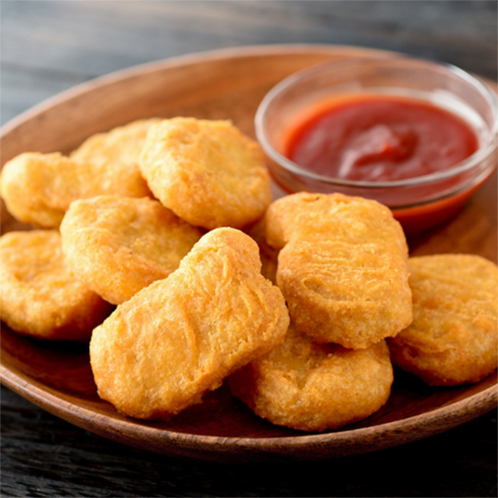 Chicken (59%), WHEAT Flour, Water, Rapeseed Oil, Maize, SOYA, MALT, Modified Maize Starch, Yeast (GLUTEN), Natural Spices, Flavour Enhancer (E621), Pepper, Spices, Onion Powder, Spice Extract, Ground CELERY Seed, Pea, Salt, Sugar, Dextrose, onion extract, Raising Agents (E450a, E500), Antioxidant E316