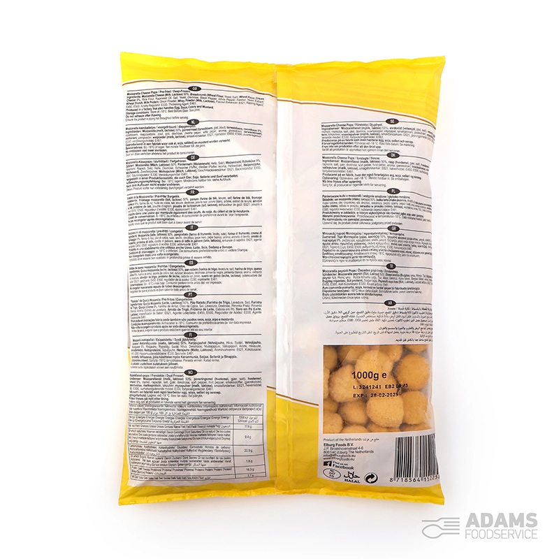 MOZZARELLA CHEESE (MILK, LACTOSE) 50%, BREADCRUMB (WHEAT FLOUR, Yeast, Salt), WHEAT FLOUR, CREAM CHEESE (MILK) 9%, Rice Flour, Rapeseed Oil, Salt, Yeast, Dextrose, Black Pepper, White Pepper, Flavour, Yeast Extract, WHEAT STARCH, MILK PROTEIN, Onion Powder, WHEY POWDER (MILK, LACTOSE), Flavour Enhancer (E621), Raising Agent (E450, E500), Acidity Regulator (E330), Thickening Agent (E461)