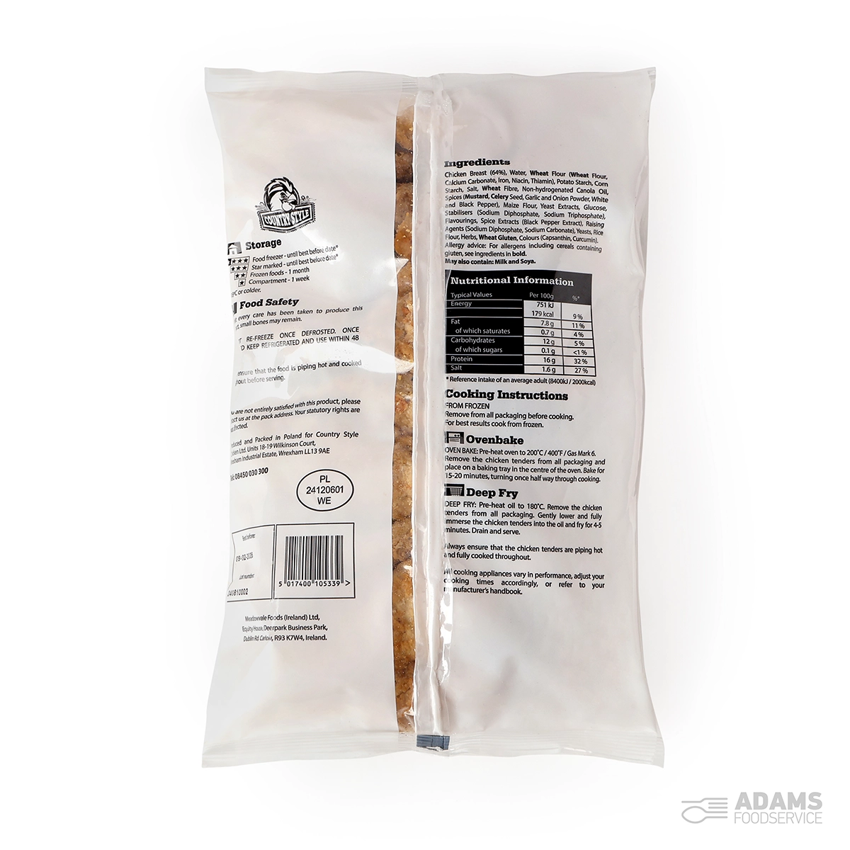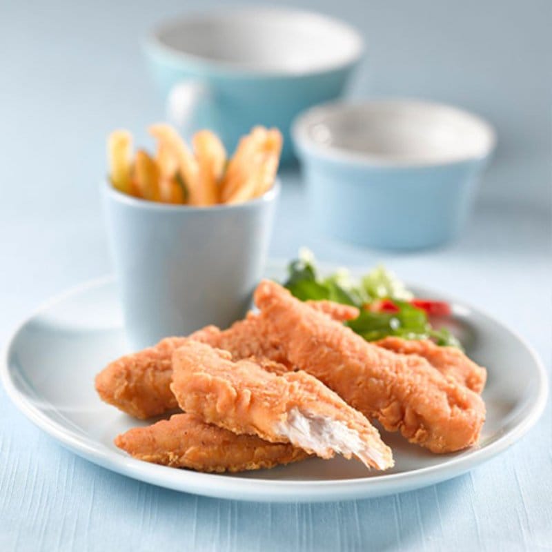 Chicken Breast (64%), Water, WHEAT Flour (WHEAT Flour, Calcium Carbonate, Iron, Niacin, Thiamin), Potato Starch, Corn Starch, Salt, WHEAT Fibre, Non-hydrogenated Canola Oil, Spices (MUSTARD, CELERY Seed, Garlic Powder, Onion Powder, White Pepper, Black Pepper), Maize Flour, Yeast Extracts, Glucose, Stabilisers (Sodium Diphosphate, Sodium Triphosphate), Flavourings, Spice Extracts (Black Pepper Extract), Raising Agents (Sodium Diphosphate, Sodium Carbonate), Yeasts, Rice Flour, Herbs, WHEAT Gluten, Colours (Capsanthin, Curcumin)
