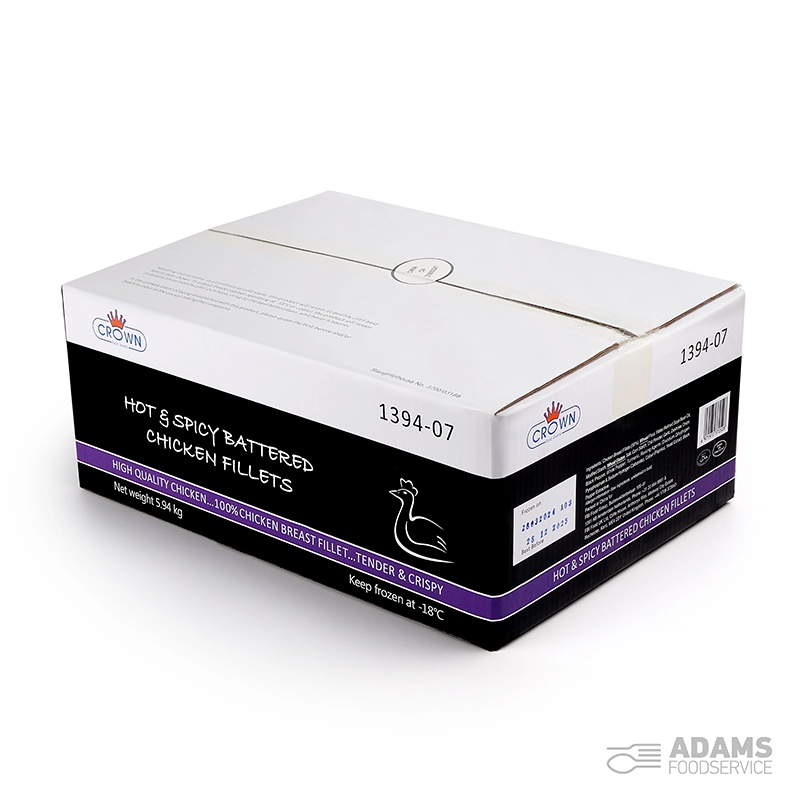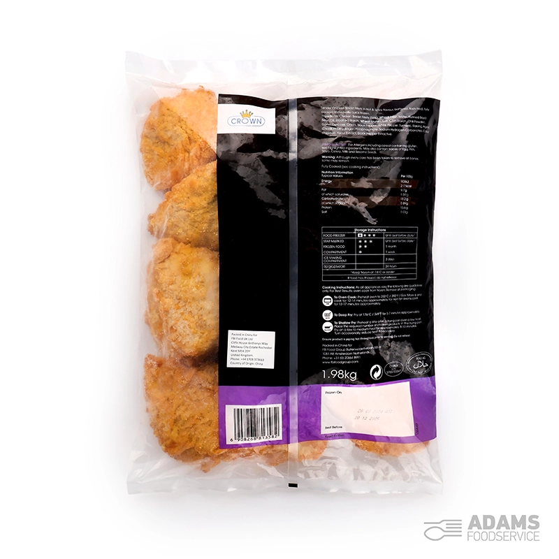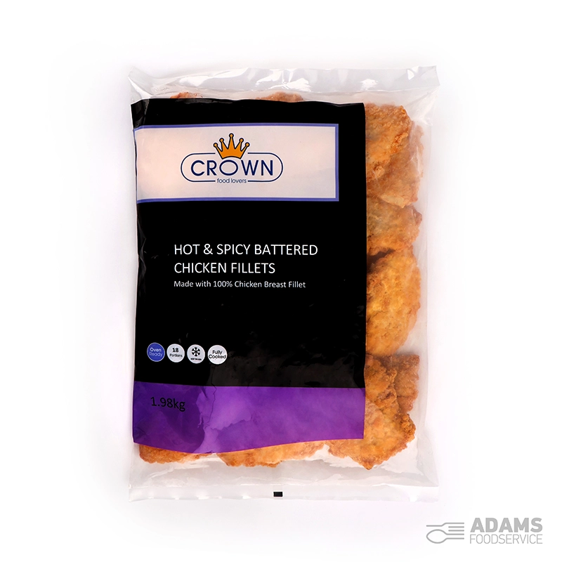 Chicken Breast Fillets (56%), WHEAT Flour, Water, Refined Soya Bean Oil, Modified Starch, WHEAT GLUTEN, Salt, Corn Starch, Chili Powder, Garlic, Dextrose, Onion, Black Pepper, White Pepper, Turmeric, Raising Agents (Disodium Dihydrogen Pyrophosphate, Sodium Hydrogen Carbonate), Colour (Paprika), Yeast Extract, Black Pepper Extractive.