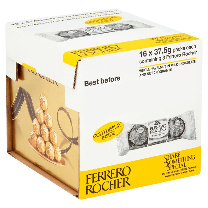 MILK Chocolate 30% (Sugar, Cocoa Butter, Cocoa Mass, Skimmed MILK Powder, Concentrated BUTTER, Emulsifier: Lecithins (SOYA), Vanillin), HAZELNUTS (28.5%), Sugar, Palm Oil, WHEAT Flour, Whey Powder (MILK) Fat-Reduced Cocoa, Emulsifier: Lecithins (SOYA), Raising Agent (Sodium Bicarbonate), Salt, Vanillin