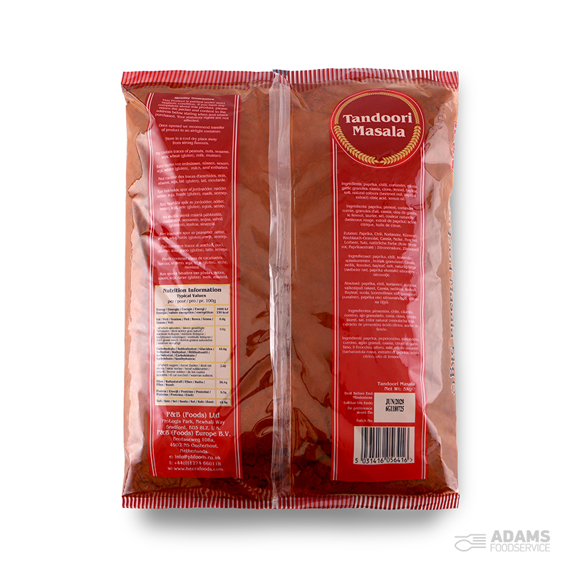 Spices (Ground Paprika, Chilli Powder, Ground Coriander, Ground Cumin, Garlic Granules, Ground Cassia, Ground Cloves, Ground Fennel), Ground Bay Leaves, Salt, Natural Colours (Beetroot Red, Paprika Extract), Acid (Citric Acid), Lemon Oil.