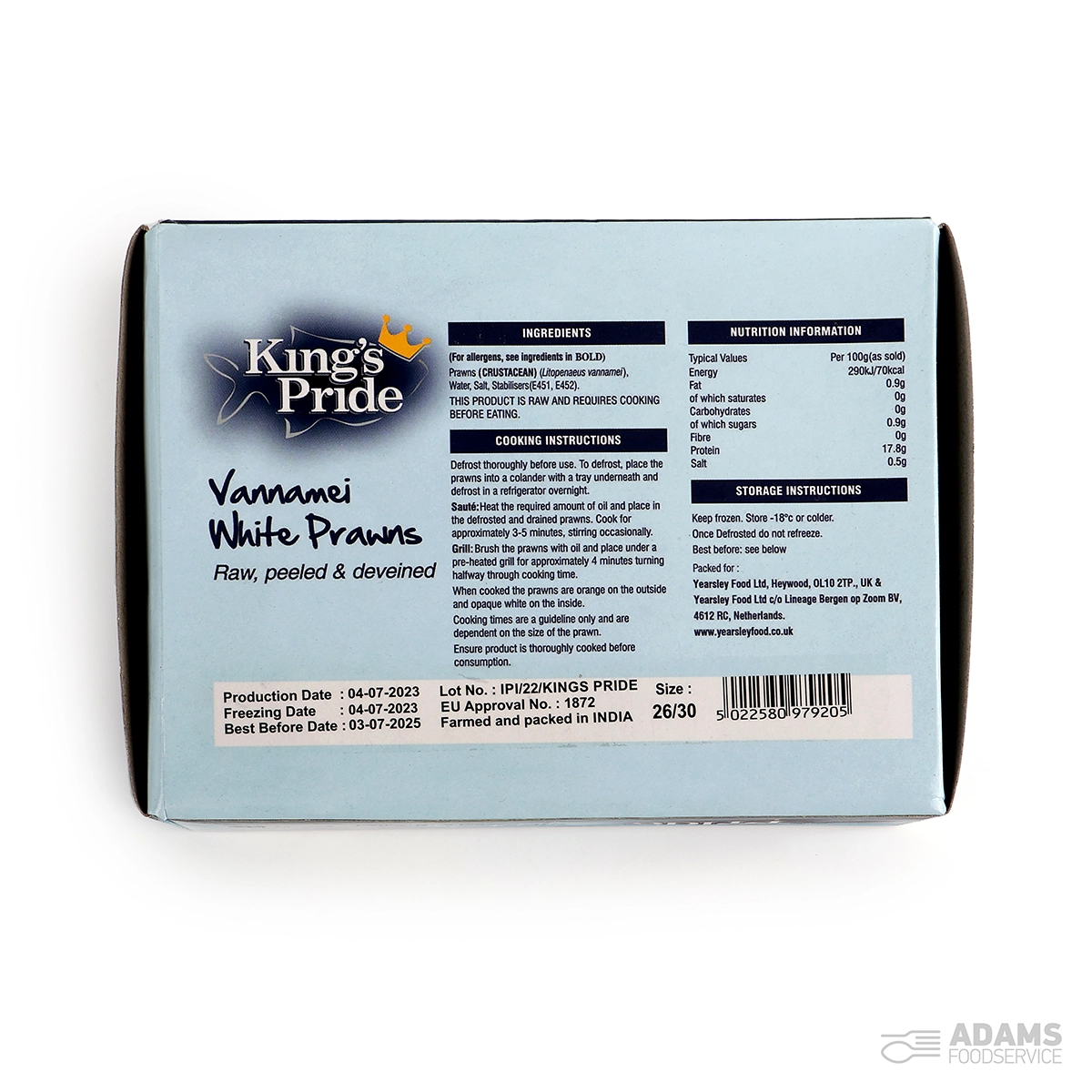 Prawns (CRUSTACEANS) (80%), Water (19%), Salt, Stabilisers (E451)