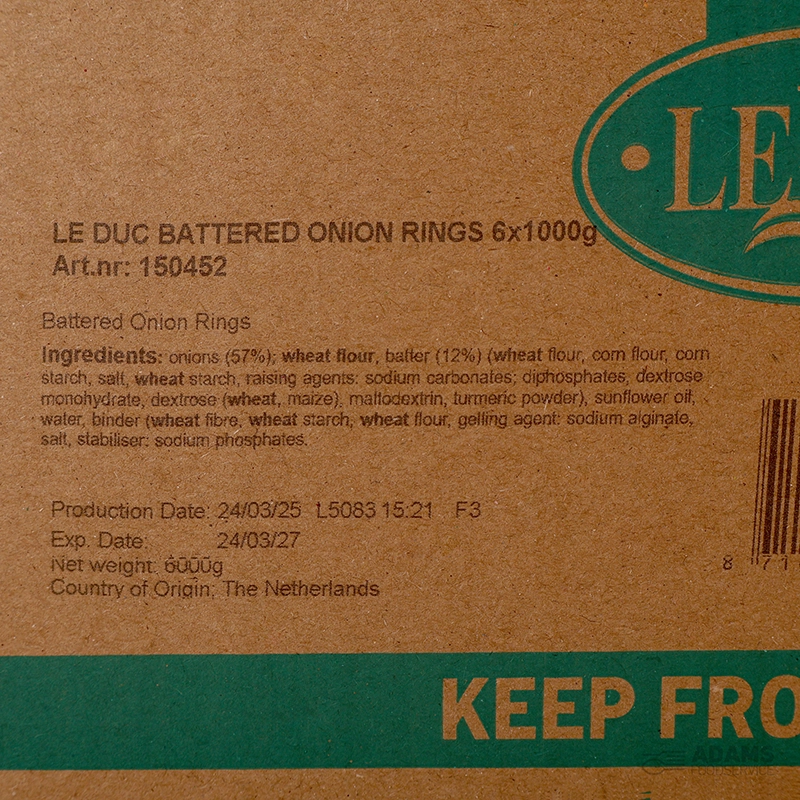 Onions (57%), WHEAT FLOUR, palm oil, water, corn flour, salt, gelling agent (sodium alginate), dextrins, dextrose, spices, stabiliser (sodium phosphates), raising agents (diphosphates, sodium carbonates)