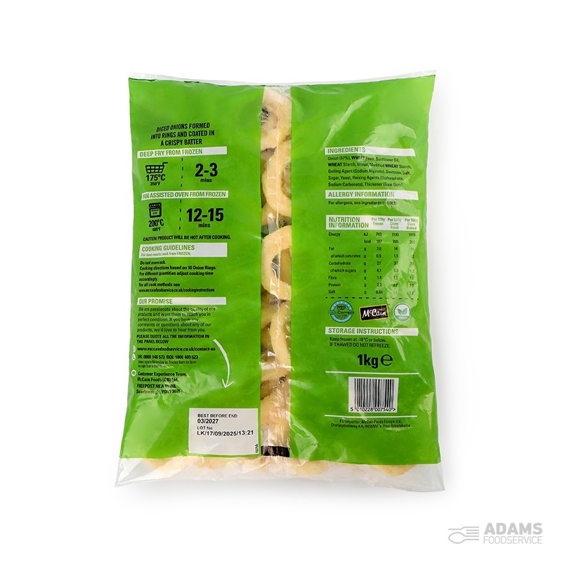 Onion (57%), WHEAT Flour, Sunflower Oil, WHEAT Starch, Water, Modified WHEAT Starch, Gelling Agent (Sodium Alginate), Dextrose, Salt, Sugar, Yeast, Raising Agents (Diphosphate, Sodium Carbonate), Thickener (Guar Gum).