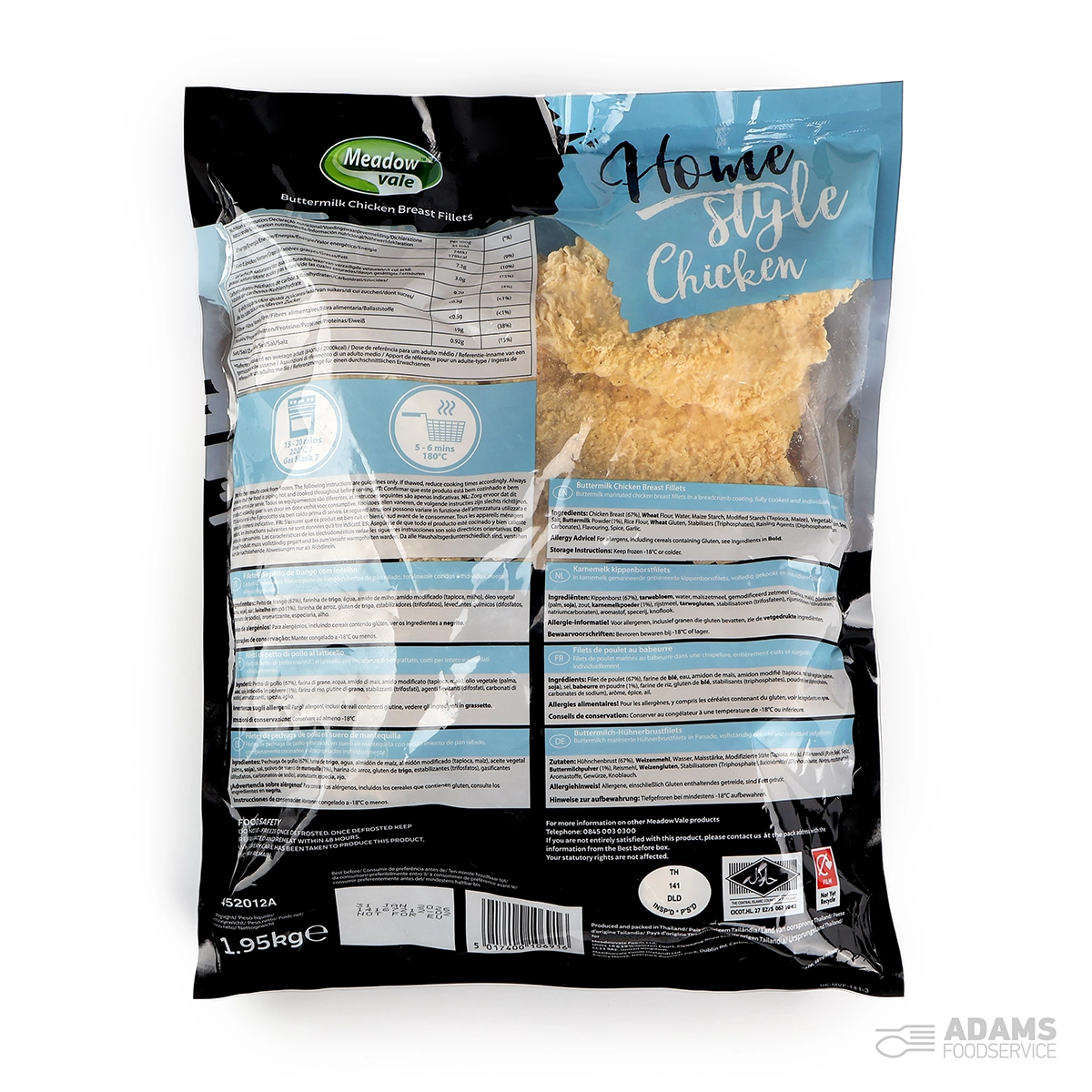 Chicken Breast (77%), Water, WHEAT Flour, Modified Starch (Tapioca, Maize), Maize Starch, Palm Oil, WHEAT Gluten, Raising Agents (Diphosphates, Sodium Carbonates), Rice Flour, BUTTERMILK (2%) (MILK), Salt, Stabilisers (Triphosphates), Flavouring, Garlic, Spice