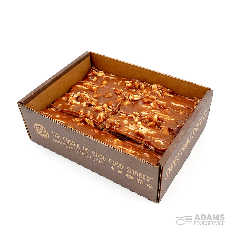 chocolate (15.84%) [sugar, unsweetened chocolate, cocoa butter, MILKFAT, whole MILK powder, nonfat dry MILK, dextrose, emulsifier (E322 (SOY)), salt, vanilla, natural vanilla extract], sugar, PEANUT butter (9.59%) [roasted PEANUTS, cane sugar, palm oil, salt], white confectionary [sugar, palm kernel oil, palm oil, WHEY (MILK), nonfat MILK, emulsifier (E322 (SOY)), pure vanilla], CREAM (MILK), EGGS, WHEAT flour, margarine [SOYBEAN oil, palm oil, water, salt, emulsifier (E471), nonfat dry MILK, emulsifier (E322 (sunflower)), natural flavour, vitamin A palmitate, colour (E160a)], glucose, BUTTER (MILK), MILK, SOYBEAN oil, water, BUTTERMILK, honey roasted PEANUTS (2.11%) [PEANUTS, sugar, honey, PEANUT OIL, salt], coconut oil, brown sugar, crisp rice [rice, brown sugar, salt, emulsifier (E471)], sweetened condensed MILK [MILK, sugar], evaporated MILK, salt, humectant (E965), Madagascar vanilla, emulsifiers (E322 (sunflower) and (SOY))