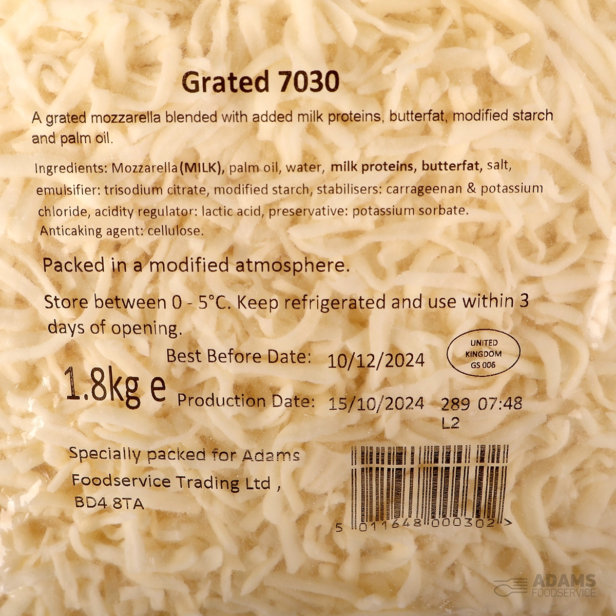 Mozzarella (69%) (MILK) (Whole MILK (99%) (MILK), Salt (1%), Starter Culture, Microbial Rennet), White Analogue (49%) (Milk) (Water (45%), Palm Oil (29%), Modified Potato Starch (11%), MILK Protein Powder (9%) (Milk), Potato Starch (2%), Trisodium Citrate (2%), Salt (2%), Tricalcium phosphate (1%), Citric Acid (1%), Beta Carotene (1%)), Potato Starch