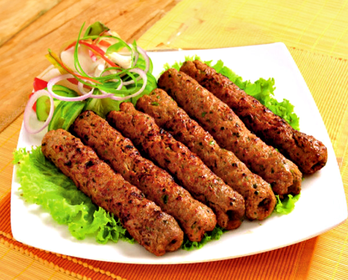 50% Mince Meat, 20% Chicken, onions, salt, green chilli, SOYA, red chilli powder, garam masala, mixed spices, coriander, ginger, garlic, pepper.