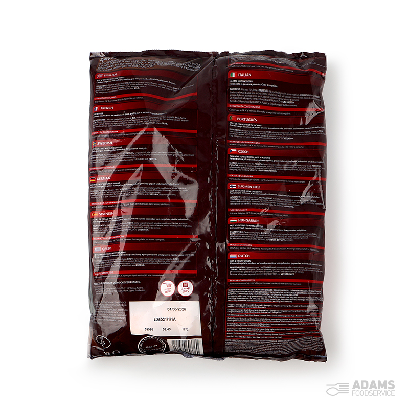 Chicken Wing (73%), WHEAT Flour, Vegetable Oil (Sunflower Oil), Modified Starch (WHEAT), WHEAT Flour (with Calcium Carbonate, Iron, Niacin, Thiamin), Salt, Maize Flour, Sea Salt, Natural Flavouring, Glucose Syrup, Yeast Extract, Spices, Colour (Paprika Extract), Rosemary Extract.