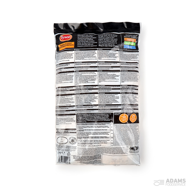 Chicken Inner Fillet (56%), Water, WHEAT Flour, Vegetable Oil (Fully Refined SOYBEAN), Salt, Spices (Black Pepper, White Pepper, Aniseed), Yeast Extract, Raising Agents (Sodium Acid Pyrophosphate, Sodium Bicarbonate), Stabilisers (Sodium Triphosphate, Sodium Polyphosphate, Sodium Diphosphate), MILK Solids, Corn Starch, Garlic Powder, Dextrose, Sage, Pepper Extracts (Black & White Pepper), EGG Powder.