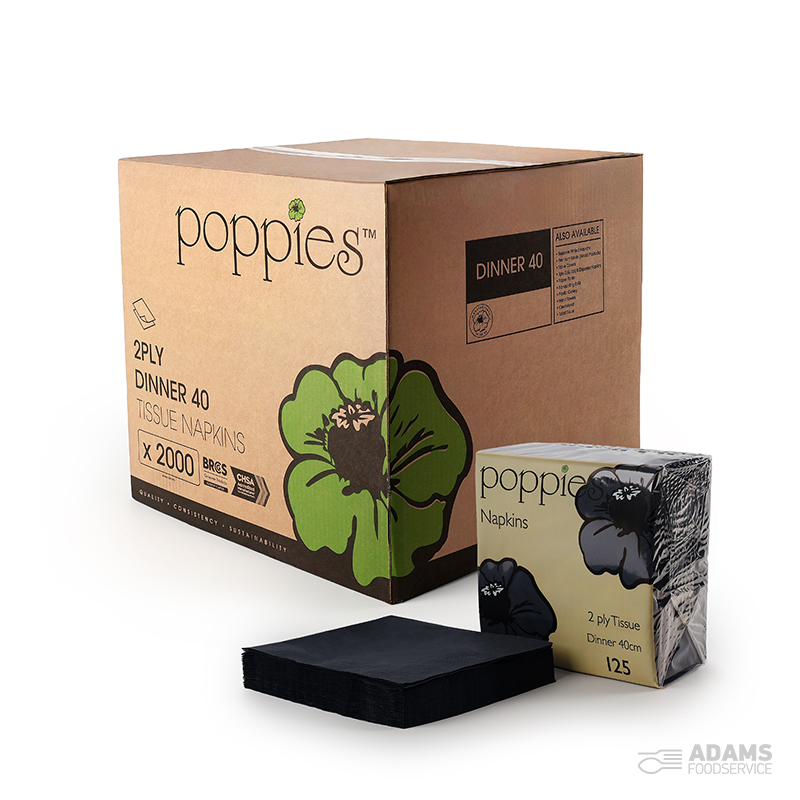 Poppies Black Napkins 2ply 40cm