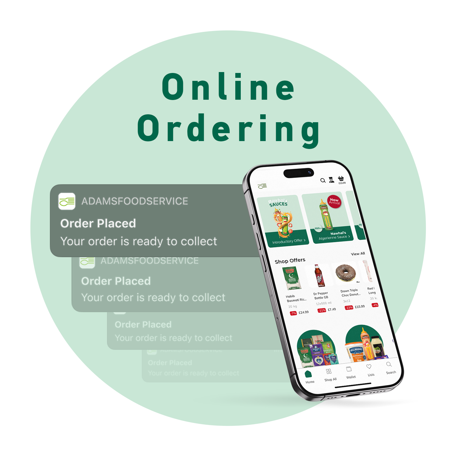 Easy Online Ordering – order on-the-go, any time of day with the Adams FoodService App